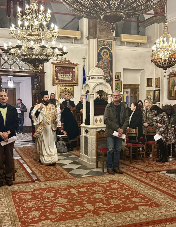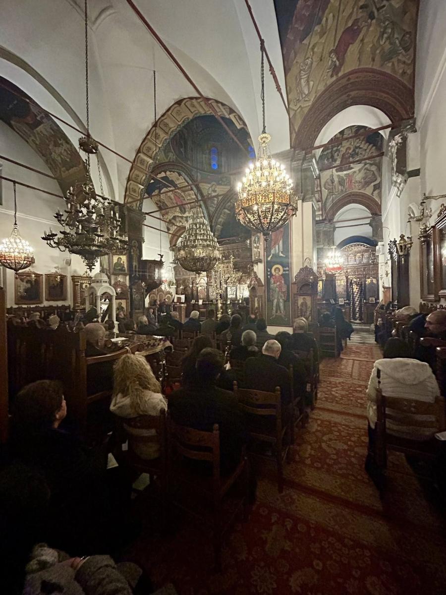Στην ακολουθία έψαλλε η χορωδία Βυζαντινής Μουσικής της Ιεράς Μητροπόλεως.