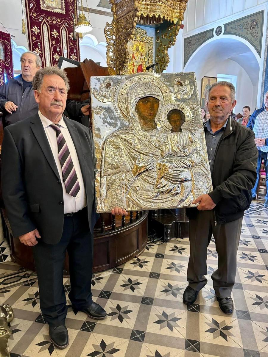 Προ του πέρατος της Θείας Λειτουργίας πραγματοποιήθηκε η λιτάνευση της ιεράς Εικόνας της Αγίας Ειρήνης και ευλογήθηκε η παραδοσιακή πανήγυρις.