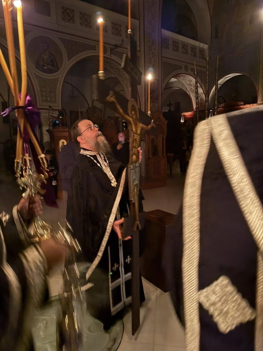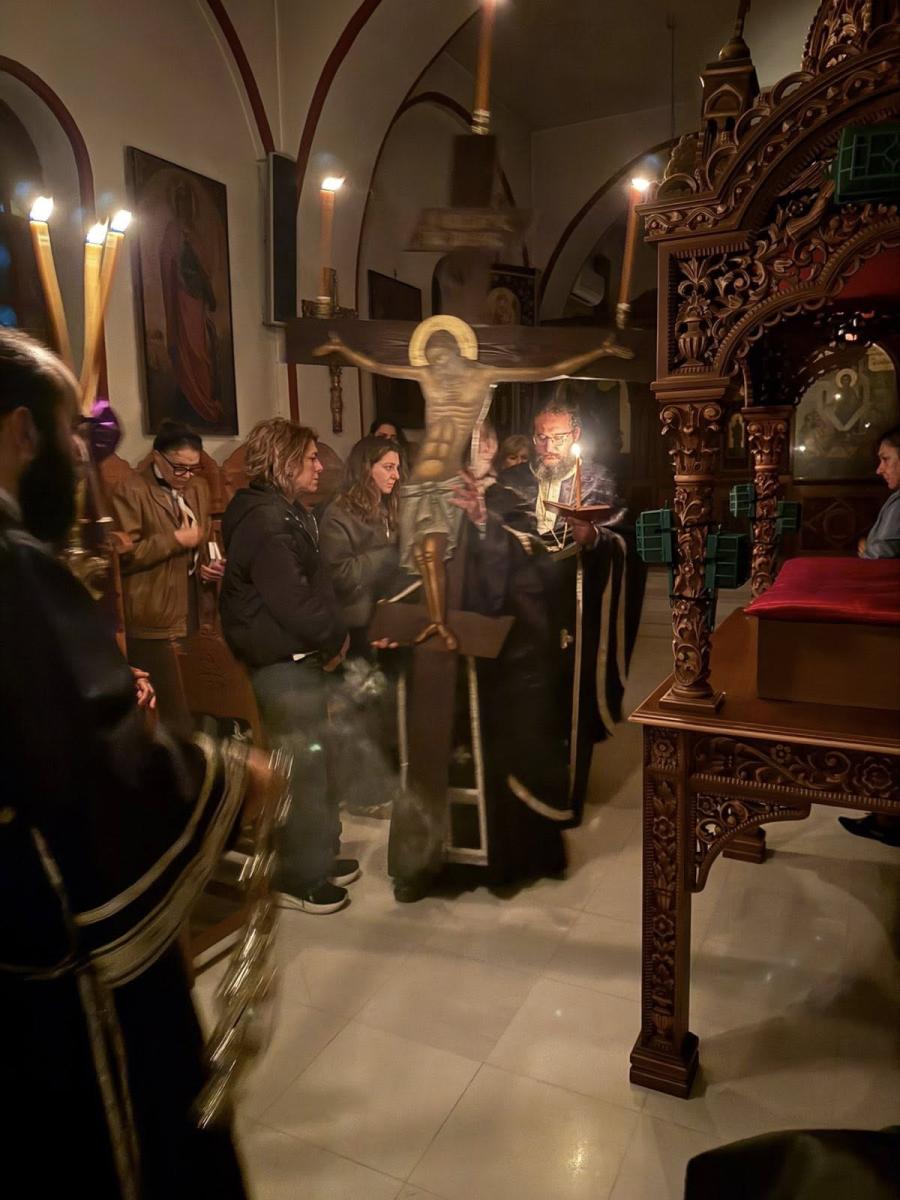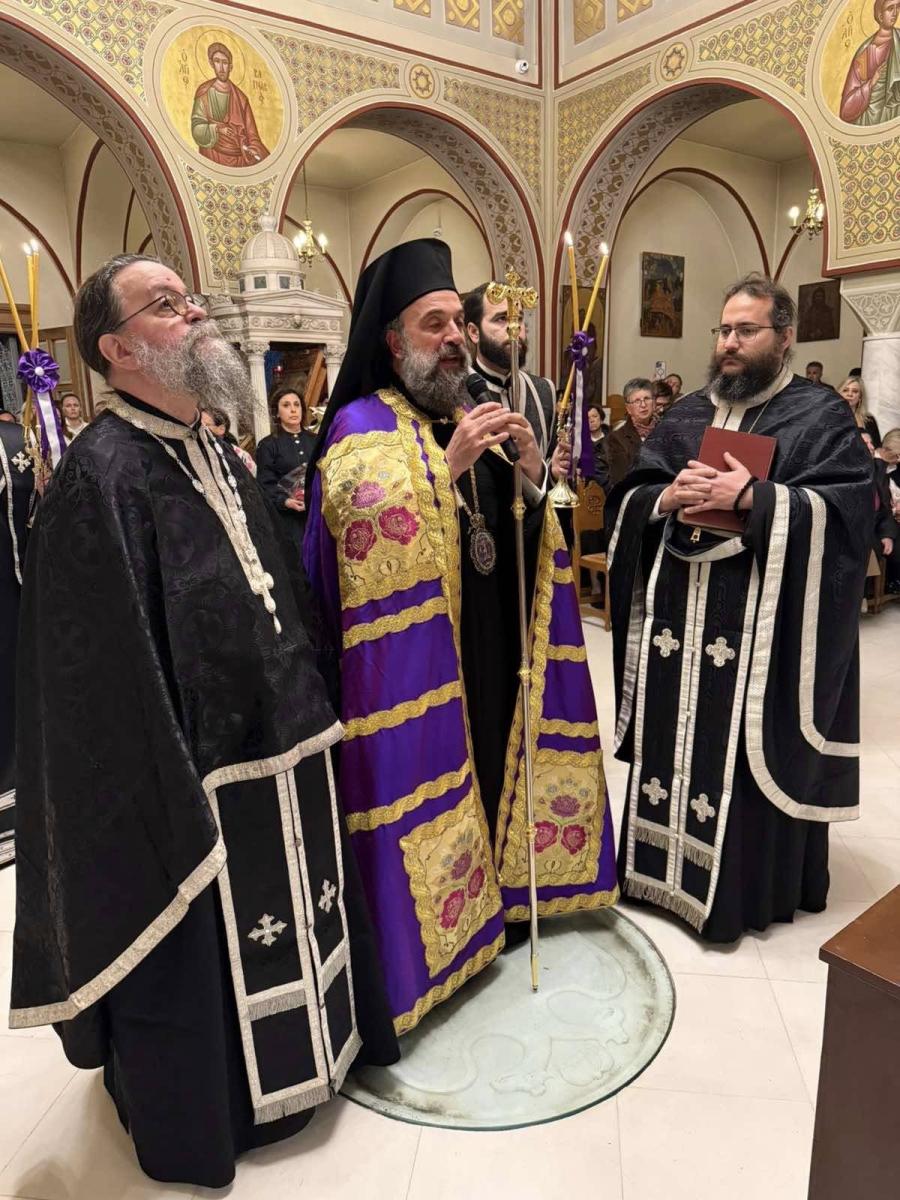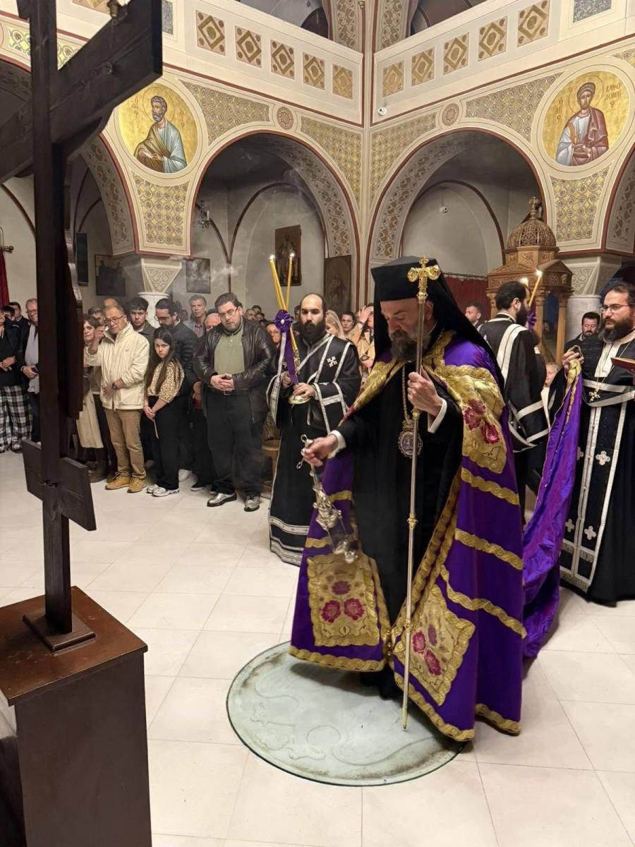 Στον σύντομο χαιρετισμό του ο Σεβασμιώτατος υπογράμμισε ότι η Εκκλησία δεν προσεγγίζει τα Πάθη ως απλή ιστορική ανάμνηση, αλλά ως ζωντανή εμπειρία σωτηρίας. Το μυστήριο της Σταυρώσεως αποκαλύπτει την άπειρη αγάπη του Θεού προς τον άνθρωπο.