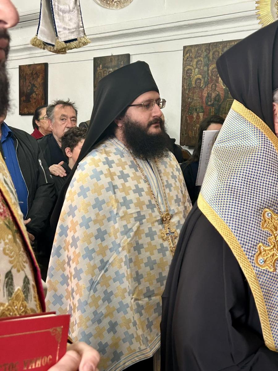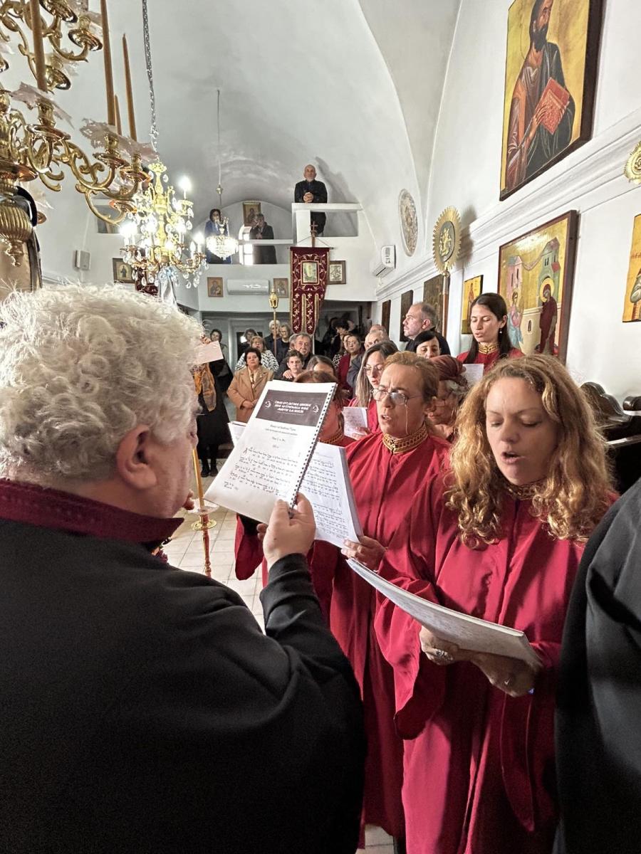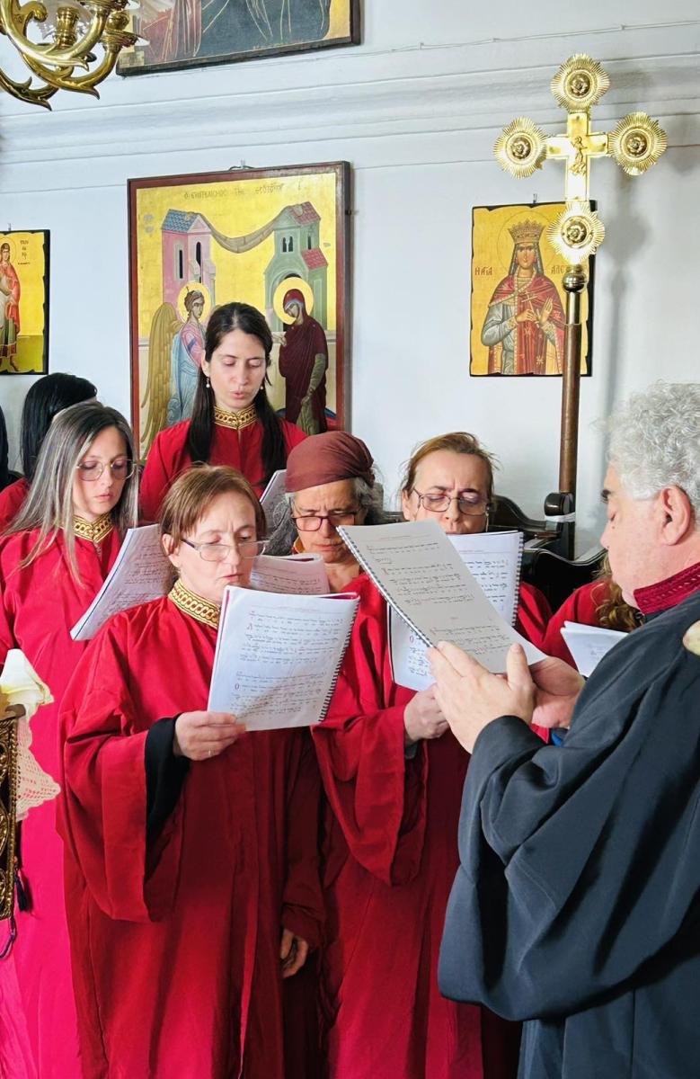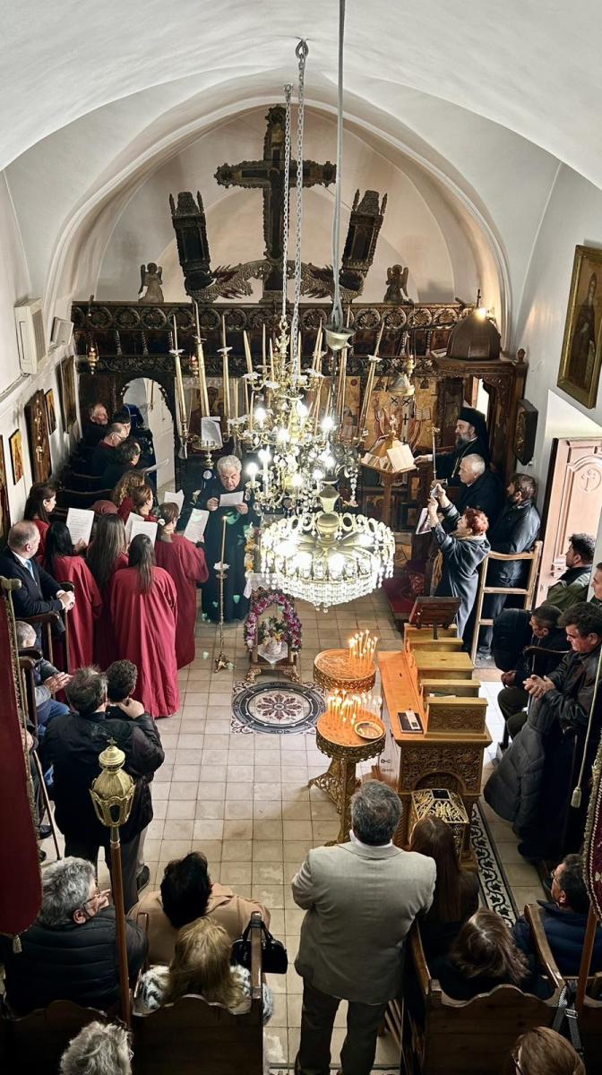 Το ιερό αναλόγιο διακόνησαν ο Διευθυντής της Σχολής Βυζαντινής Μουσικής της Ιεράς Μητροπόλεως κ. Ευτύχιος Μαρκοζάννες και μαθητές της Σχολής.