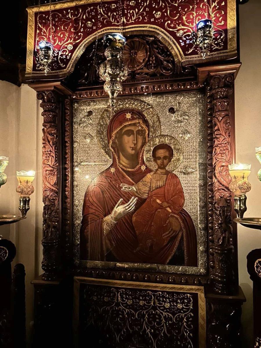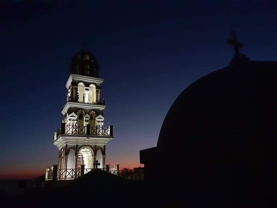Ο Ιστορικός Ιερός Ναός στον οποίο ο Σεβασμιώτατος Ποιμενάρχης ετέλεσε την ιερά αγρυπνία, αποτελεί μνημείο μοναδικό της Σαντορίνης, κοσμείται με ιερές εικόνες και κειμήλια απαράμιλλης τέχνης και εγκαινιάστηκε στις 30 Αυγούστουτου έτους 1662. Σε αυτόν, η εκ βάθρων ανακαίνιση του οποίου έγινε κατά τα έτη 2009-2010, ιερουργούσαν, εκήρυτταν και εξομολογούσαν οι σύγχρονοι Όσιοι Αμφιλόχιος της Πάτμου και Φιλόθεος της Πάρου, οσάκις για λόγους ιεραποστολής επισκέπτονταν την Σαντορίνη.