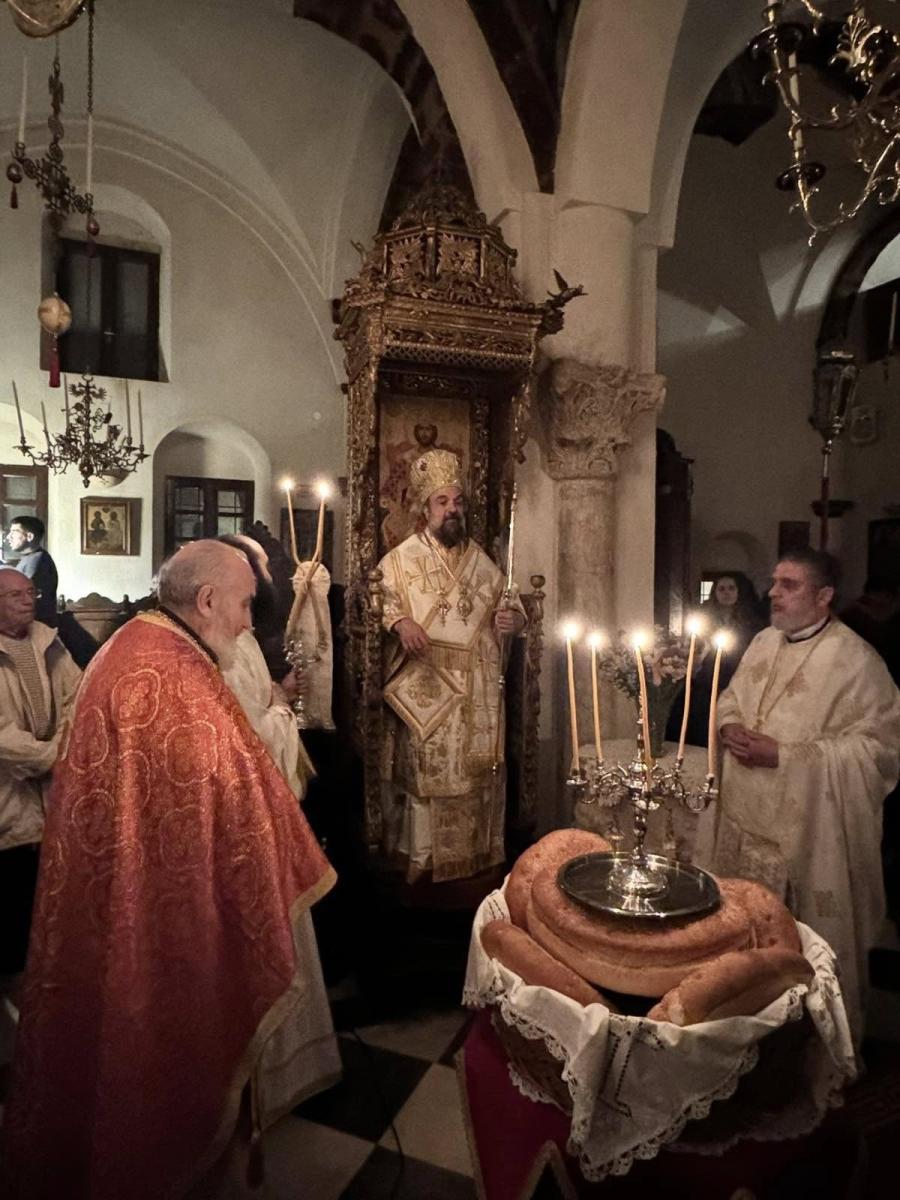 Σε κλίμα κατάνυξης τελέστηκε την Παρασκευή 3 Απριλίου 2026 Ιερά Αγρυπνία στον ευρισκόμενο στο μεταβυζαντινό Καστέλι Εμπορείου περικαλλή Ιστορικό Ιερό Ναό Ευαγγελισμού της Θεοτόκου, επί τη εορτή της Εγέρσεως του Αγίου και Δικαίου φίλου του Χριστού Λαζάρου του Τετραημέρου.