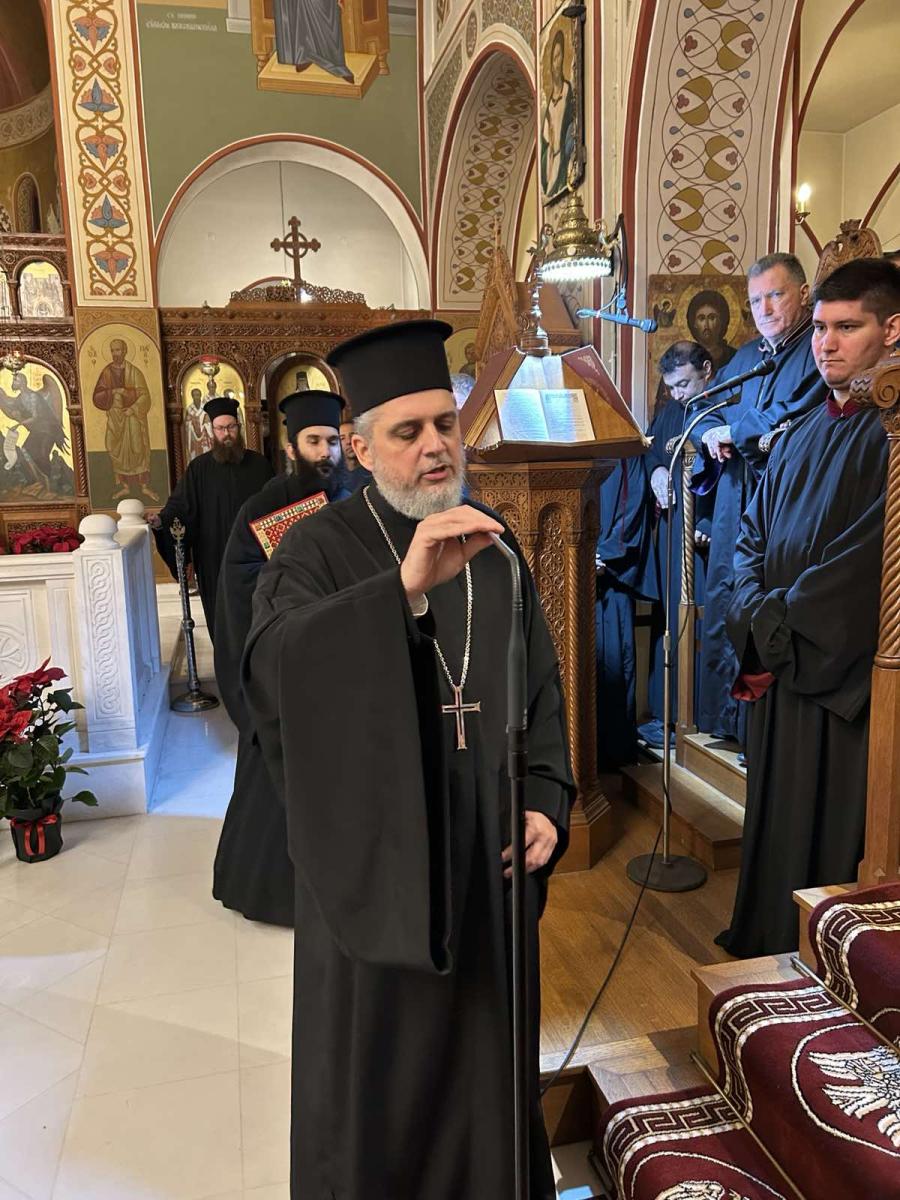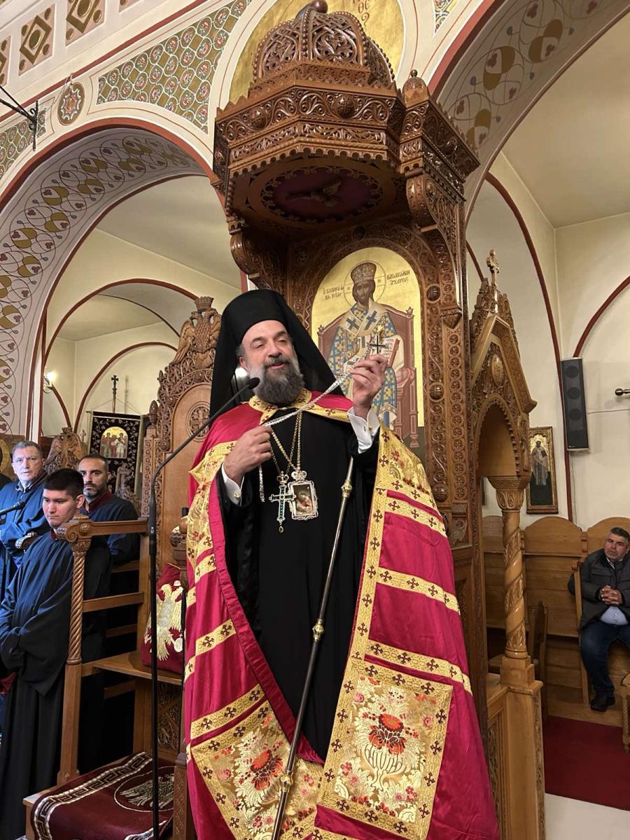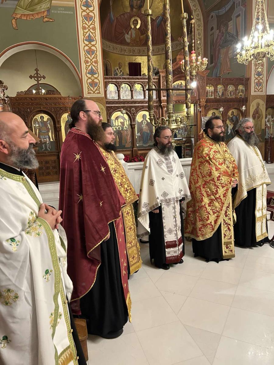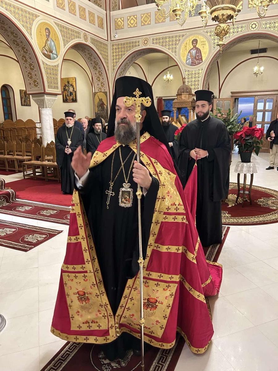 Μετά το πέρας του Εσπερινού, ο Σεβασμιώτατος ευχήθηκε καταλλήλως στους ιερείς και το εκκλησίασμα, προκειμένου να βιώσουν πραγματικά το μυστήριο της Θείας Ενανθρωπήσεως, καλώντας τους να προσκυνήσουν ευλαβικά το «νέον παιδίον» με τις καρδιές πλημμυρισμένες από αγάπη κι ευγνωμοσύνη προς Αυτό.