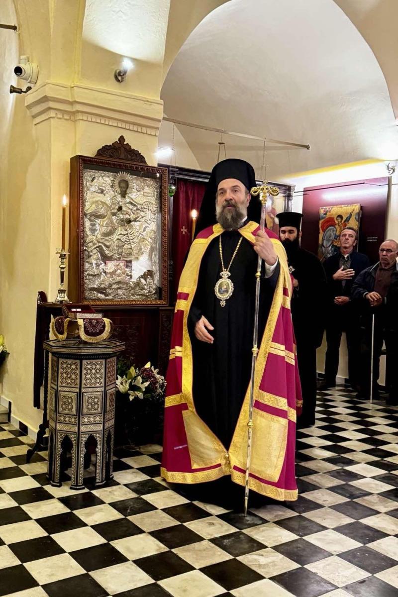 Ο Σεβασμιώτατος Μητροπολίτης Θήρας, Αμοργού και Νήσων κ. Αμφιλόχιος χοροστάτησε στον πανηγυρικό εσπερινό που τελέστηκε στον πανηγυρίζοντα Ιερό Ναό του Αγίου Μηνά στα Φηρά της Σαντορίνης το οποίο αποτελέι Μετόχιο της Ιεράς Μονής Προφήτου Ηλιού Θήρας, με τη συμμετοχή του Καθηγουμένου της Ιεράς Μονής, αρχιμανδρίτου Καλλινίκου Ρούσσου.