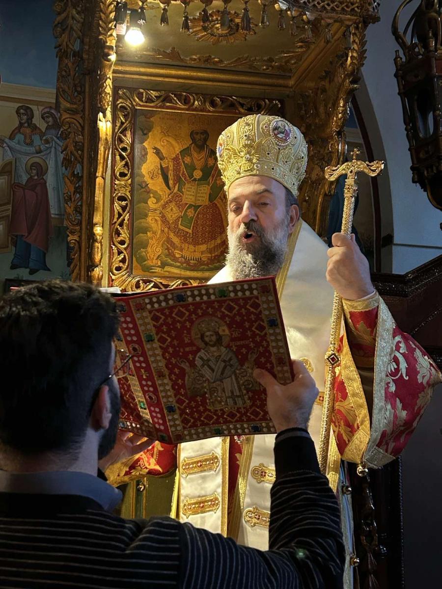Στο κήρυγμά του, ο Σεβασμιώτατος αναφέρθηκε στη σημερινή ευαγγελική περικοπή από το κατά Λουκάν Ευαγγέλιο, τονίζοντας ότι το χαρμόσυνο μήνυμα της Γεννήσεως του Χριστού αποκαλύφθηκε πρώτα σε ταπεινούς και απλούς ποιμένες. Υπογράμμισε ότι ο Θεός φανερώνεται σε καρδιές καθαρές και απλές, σε ανθρώπους που δεν στηρίζονται στη δύναμη ή στη γνώση τους, αλλά στη ζωντανή πίστη και την ταπείνωση.