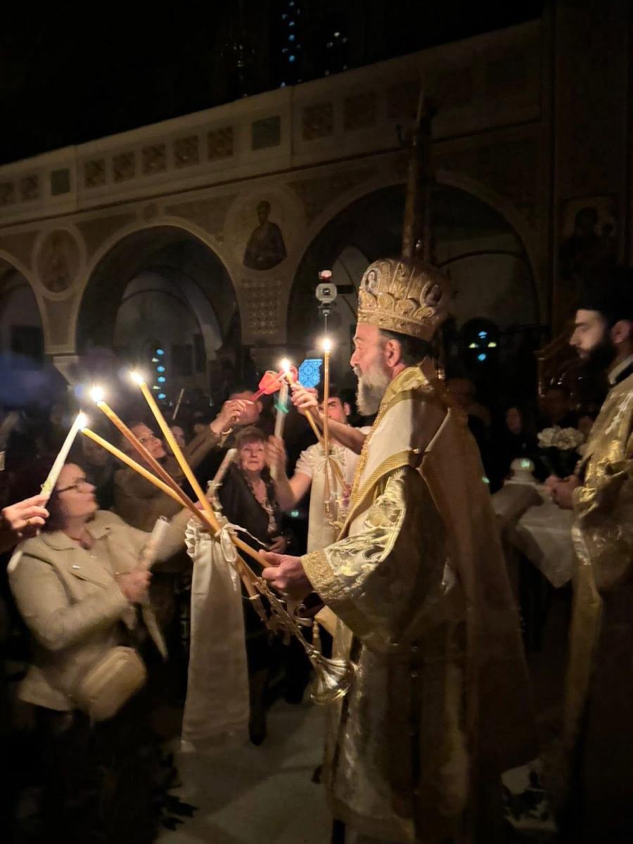 Ακολούθησε ο πανηγυρικός Όρθρος της Αναστάσεως και η Αναστάσιμη Θεία Λειτουργία. Στο τέλος της Θείας Λειτουργίας, ο Σεβασμιώτατος μοίρασε στους πιστούς τις πασχαλινές ευλογίες, μεταφέροντας το μήνυμα της Ανάστασης και της Ζωής.