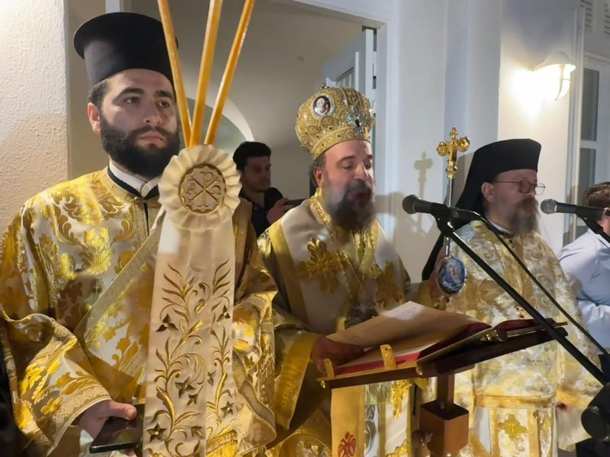 Η τελετή της Αναστάσεως πραγματοποιήθηκε στον προαύλιο χώρο του Μητροπολιτικού Ναού, απέναντι από το ξενοδοχείο Ατλαντίς, με τη συμμετοχή πλήθους πιστών.
