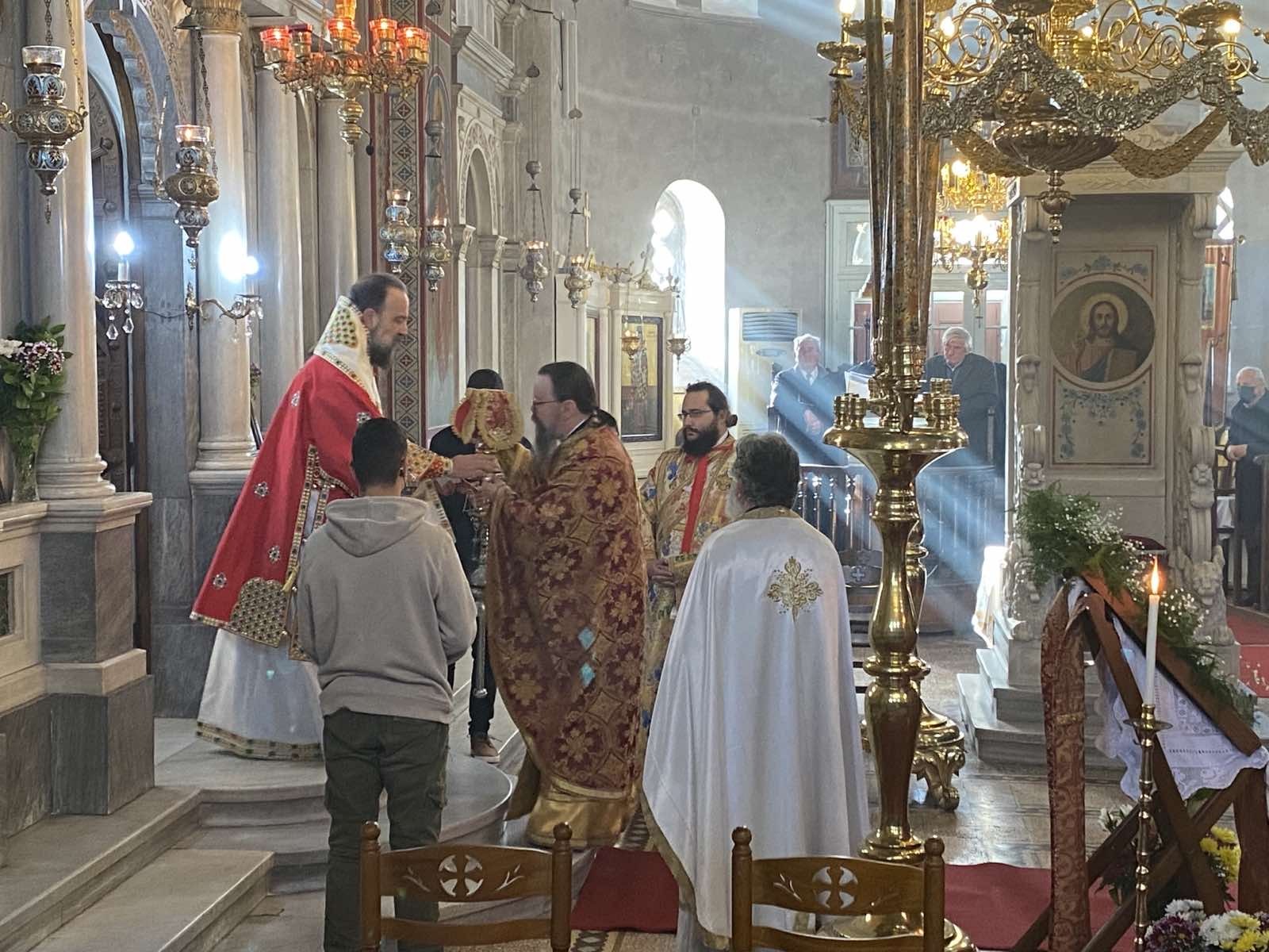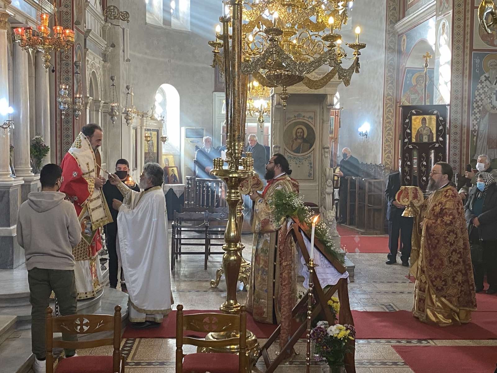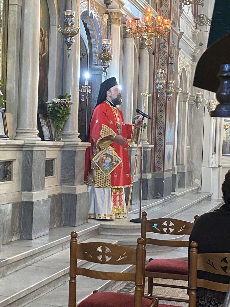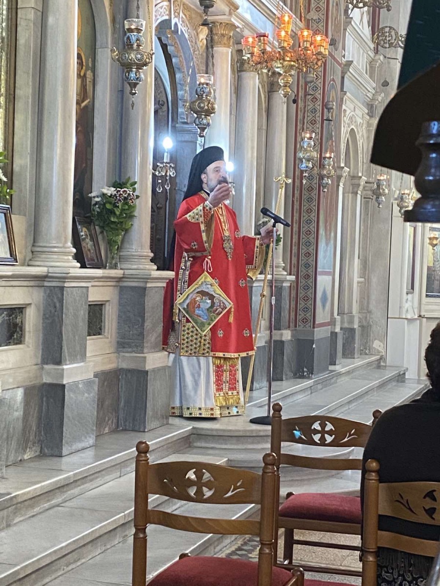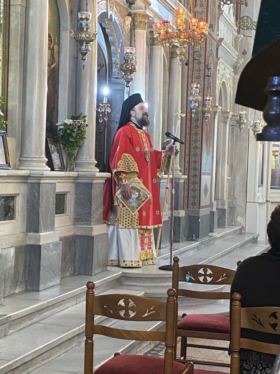 Τον Σεβασμιώτατο καλωσόρισε και ευχαρίστησε ο προϊστάμενος του Ιερού Ναού, π. Εμμανούηλ Λειβαδάρος με λόγια θερμά και εγκάρδια.