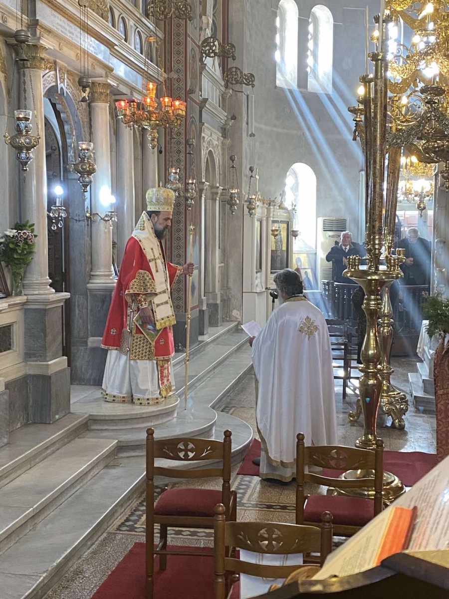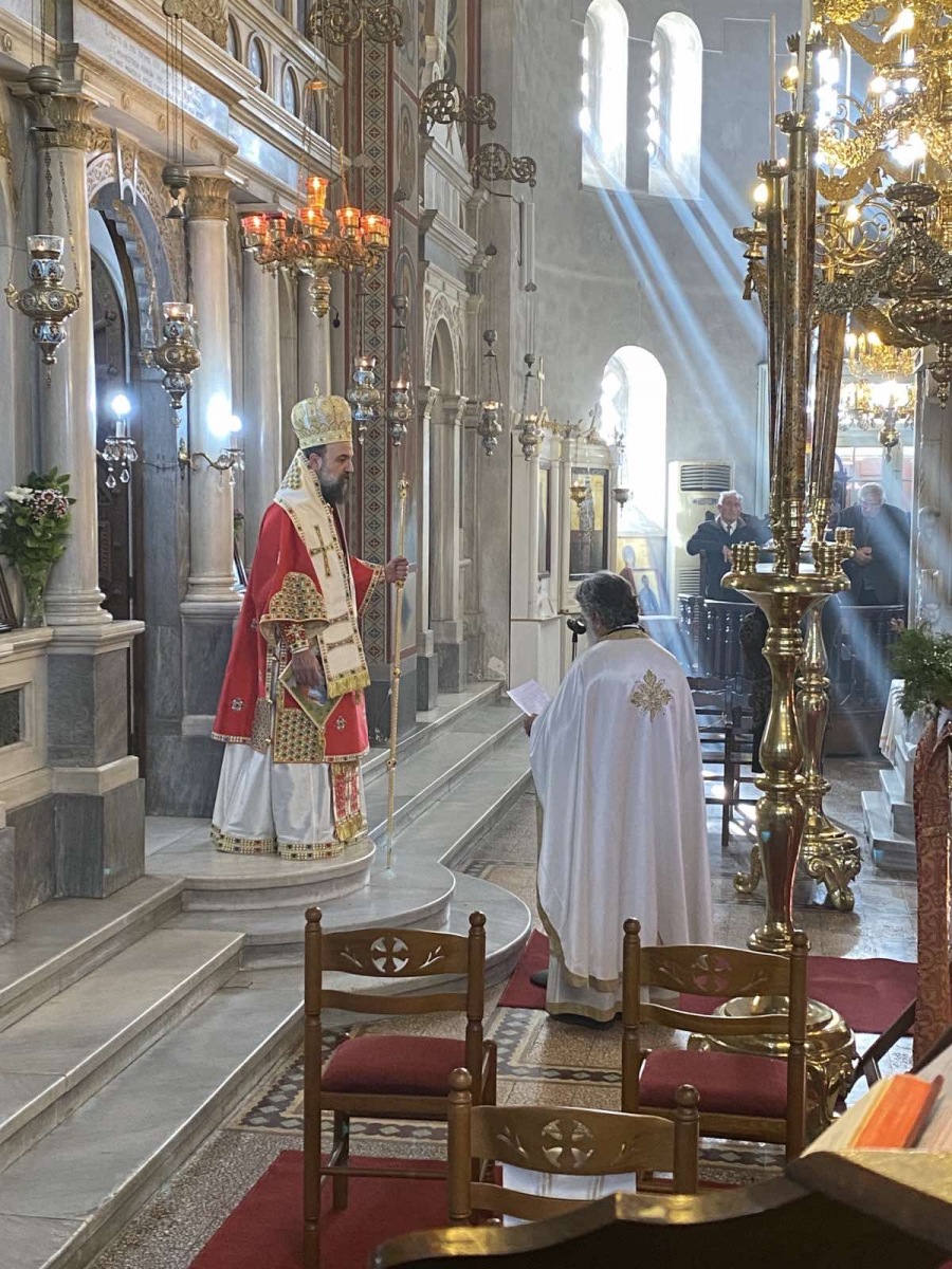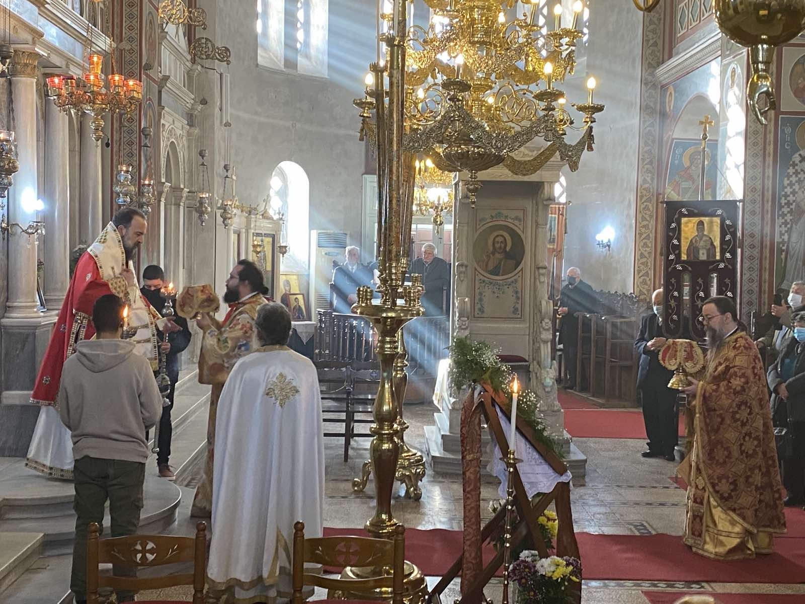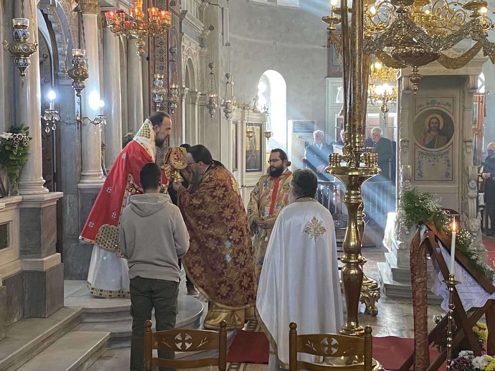 Τον Σεβασμιώτατο καλωσόρισε και ευχαρίστησε ο προϊστάμενος του Ιερού Ναού, π. Εμμανούηλ Λειβαδάρος με λόγια θερμά και εγκάρδια.