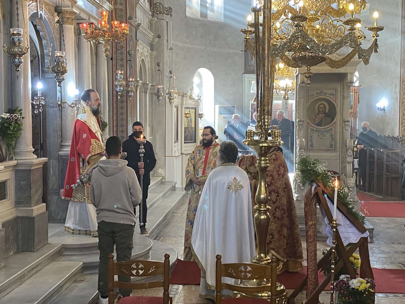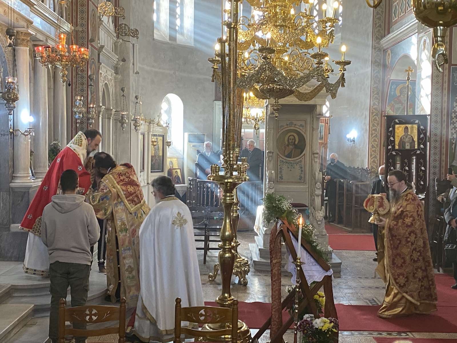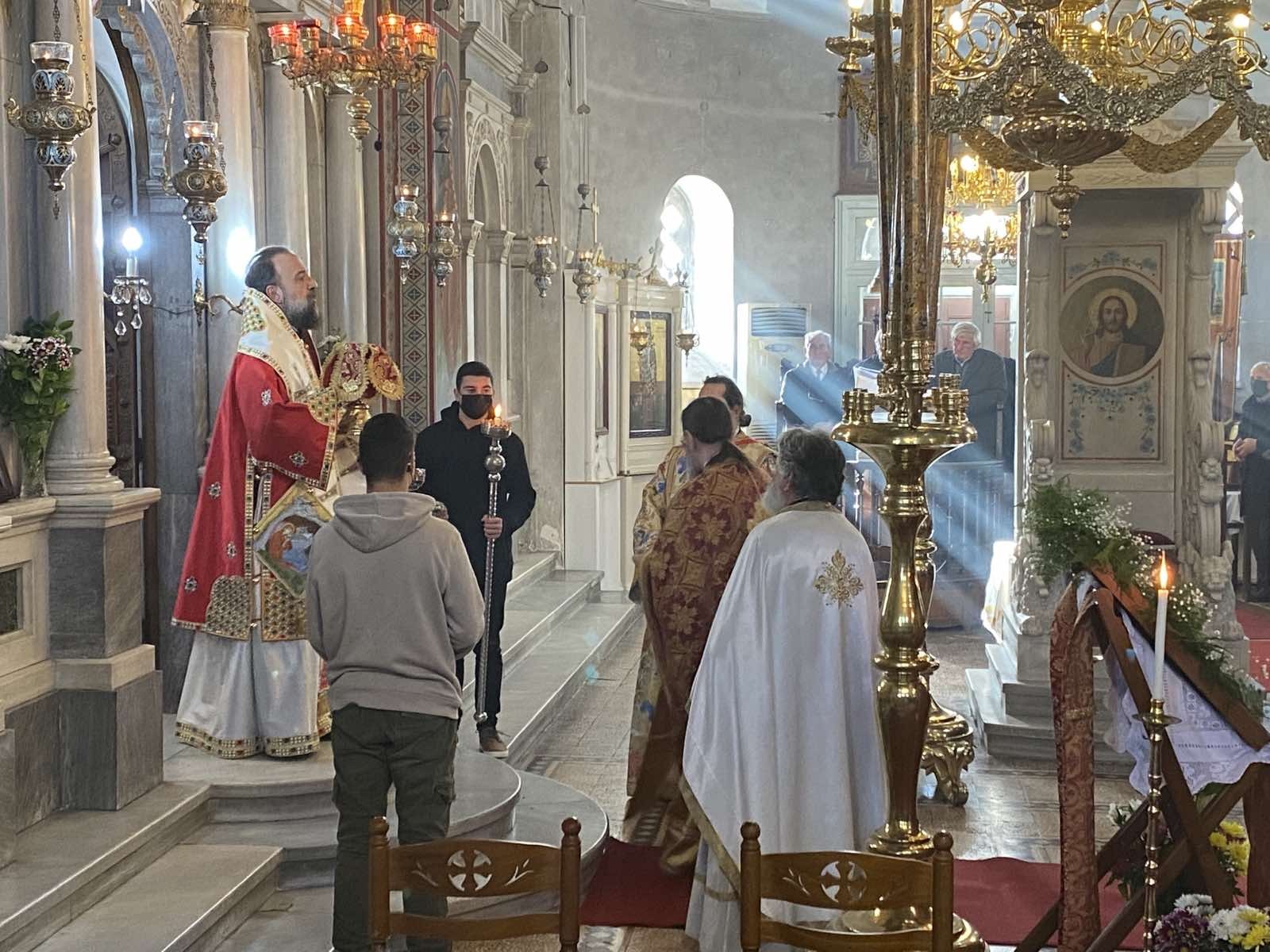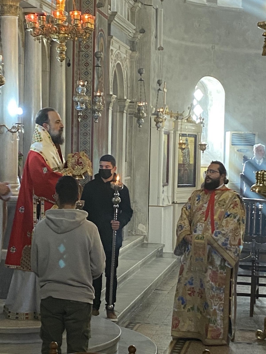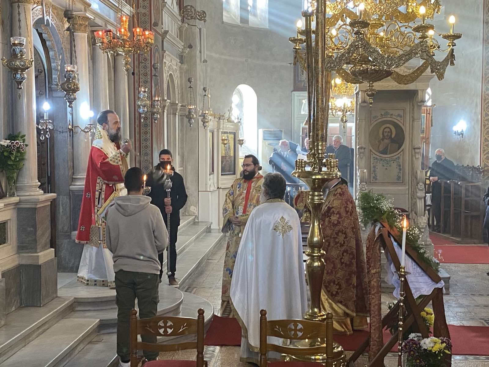 Τον Σεβασμιώτατο καλωσόρισε και ευχαρίστησε ο προϊστάμενος του Ιερού Ναού, π. Εμμανούηλ Λειβαδάρος με λόγια θερμά και εγκάρδια.
